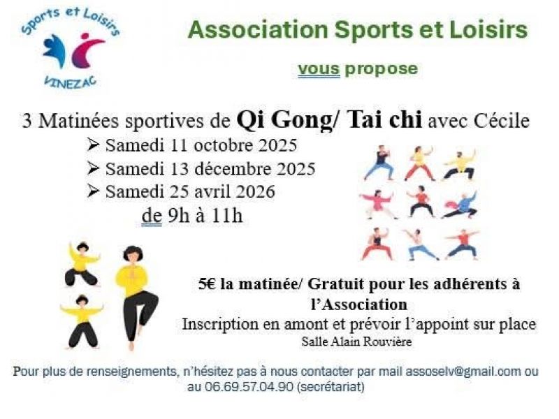 L'Association Sports et Loisirs propose des Matinées sportives de Qi Gong/ Taï chi avec Cécile