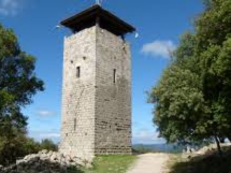 la tour de Brison, au-dessus de Sanilhac, qui offre un panorama incomparable des gorges de l’Ardèche au massif du Tanargue.