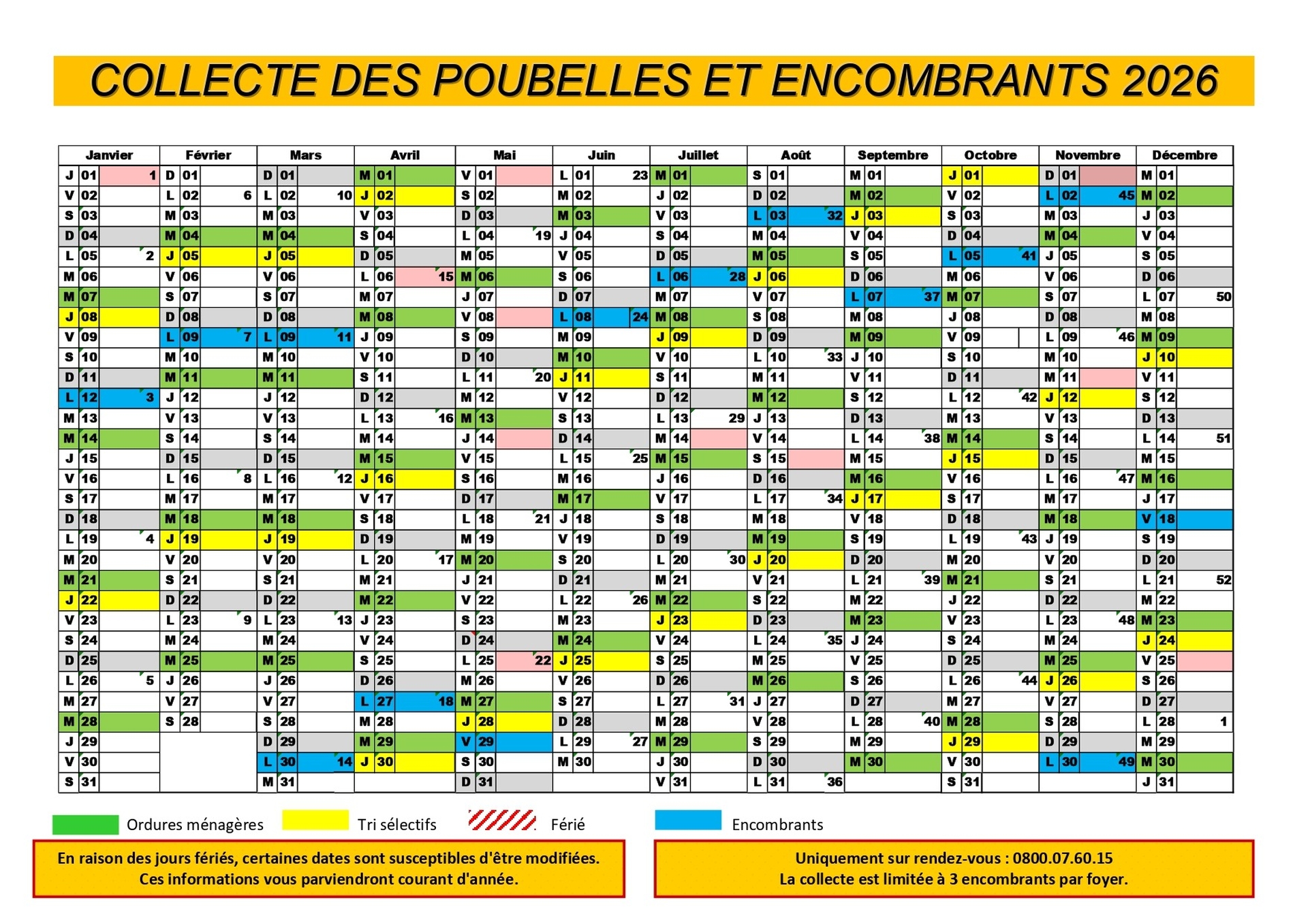 L'enlèvement des ordures ménagères est hebdomadaire :